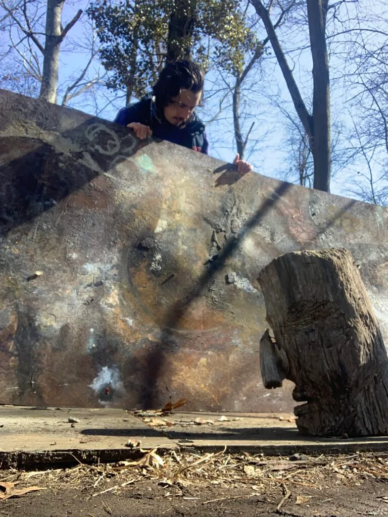 The painting began in 2016 either in the San Francisco Bay or in my Dogpatch studio using Pacific ocean water and SF mist as the agent transformation. It is on 8 foot 22 gauge cold rolled steel.